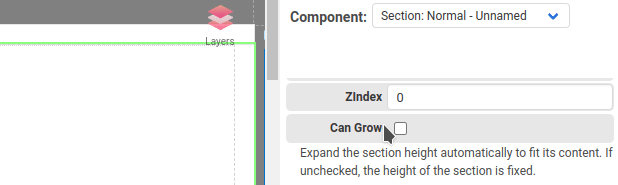 If Can Grow of a normal section is enabled, a normal section expands the section height automatically to fit its content. If unchecked, the height of the section is fixed.