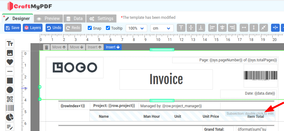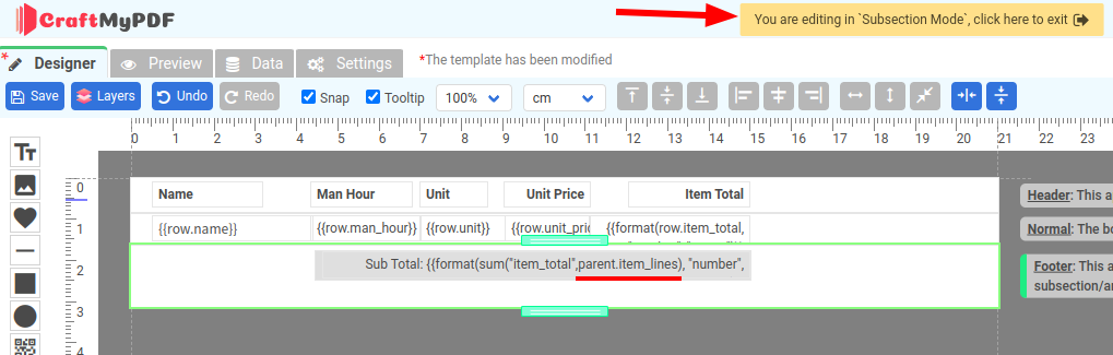 The following is a subsection within a data-bound normal section. Double click on the subsection you will enter into the subsection mode which you can edit the subsection.