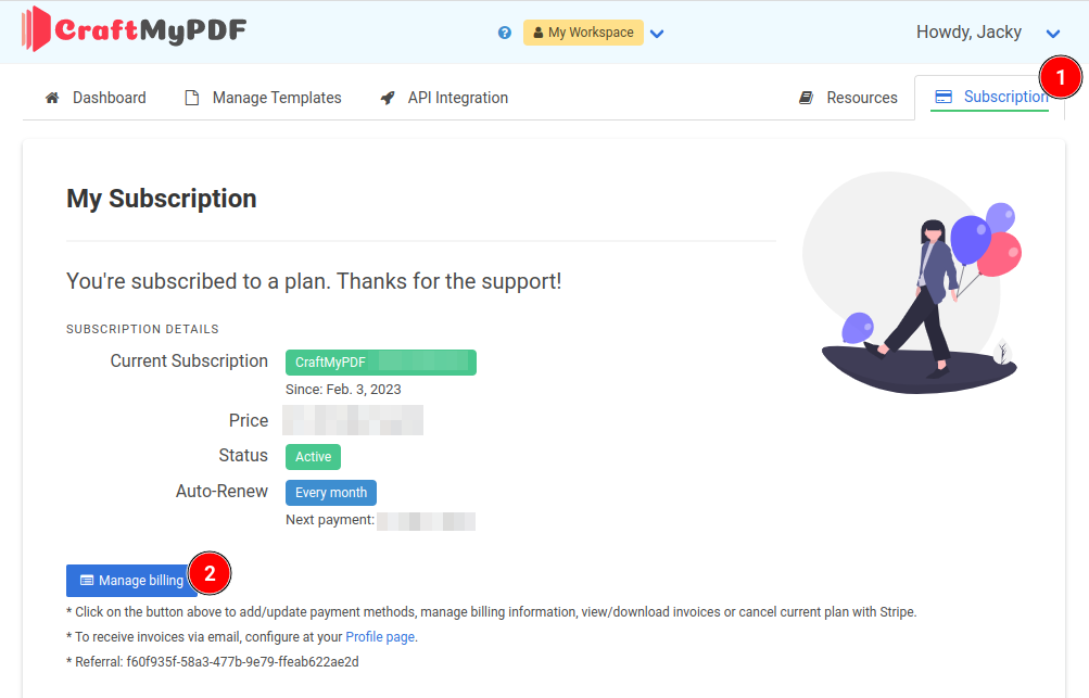 Navigate to your subscription page (https://app.craftmypdf.com/subscriptions/)